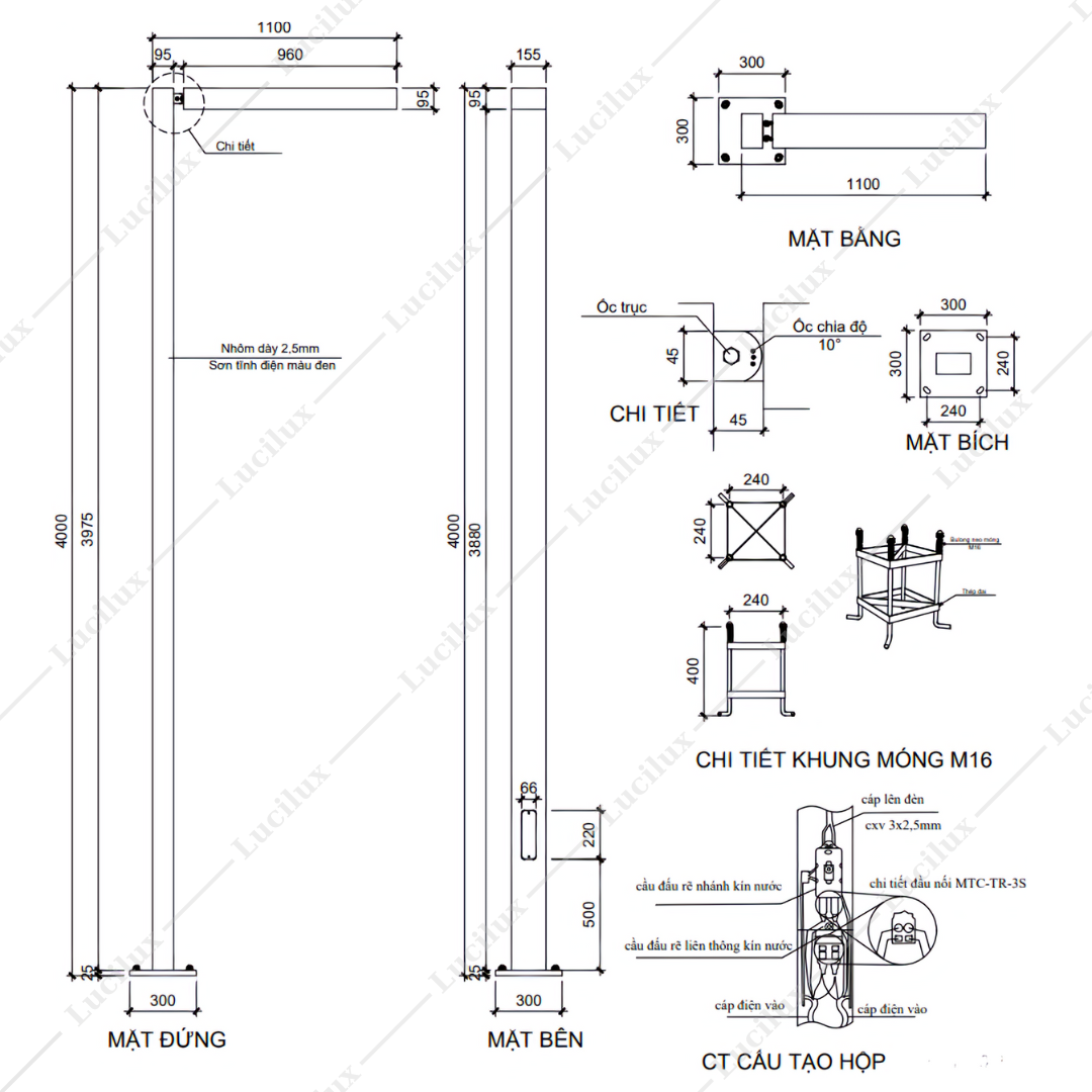 Cột đèn chiếu sáng LC-GL-022 mang phong cách cổ điển hiện đại, các chi tiết được thiết kế gia công tỉ mỉ luôn làm hài lòng khách hàng.
