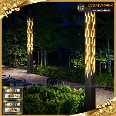 Cột đèn chiếu sáng trang trí LC-PL1222 có kiểu dáng độc đáo. Các khe thoát sáng như hình giọt nước mưa kéo dài, tạo cảm giác như những cơn mưa sao băng rơi xuống khu vườn nhà bạn.