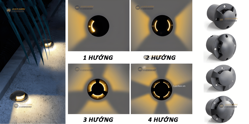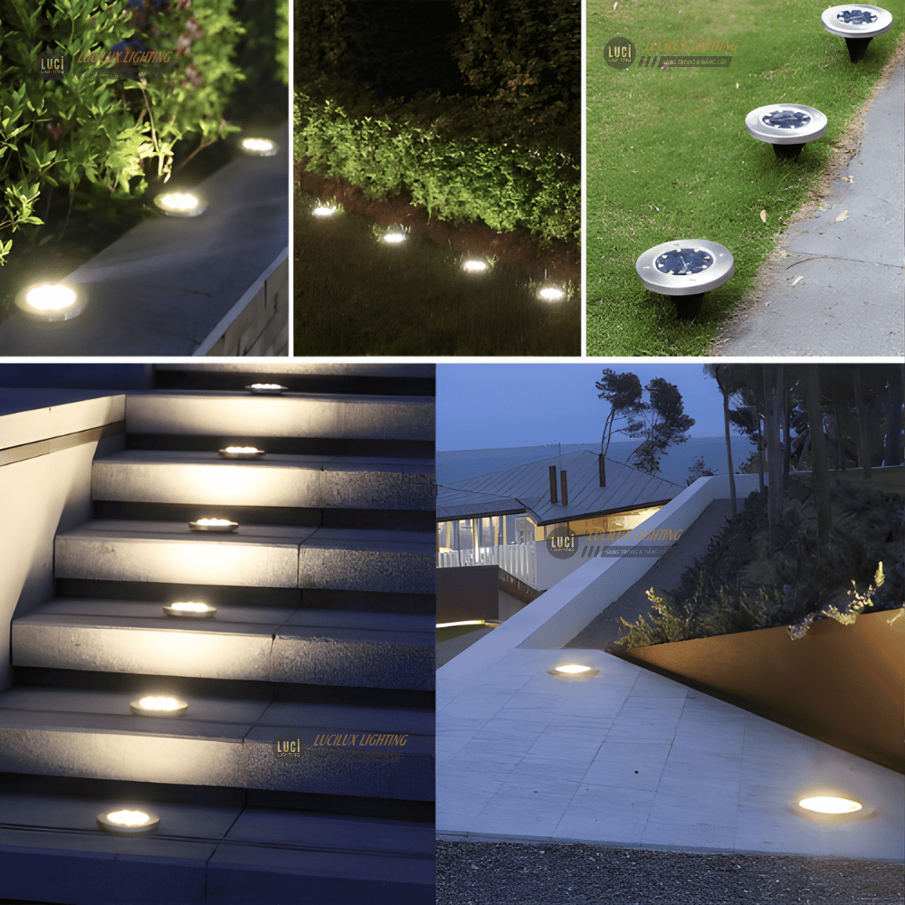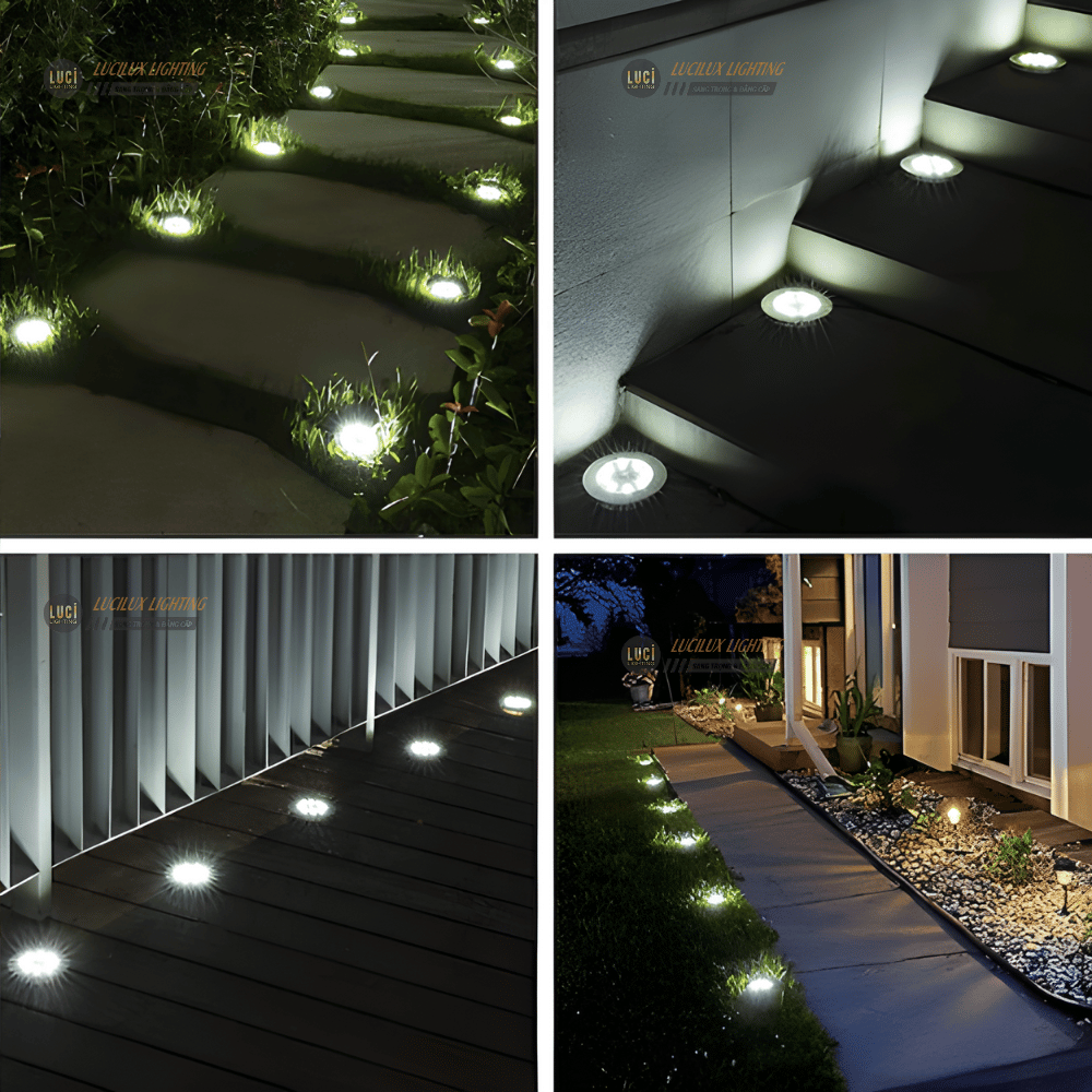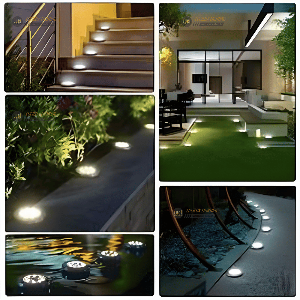 - Đèn led âm đất hình tròn: Phổ biến và linh hoạt, phù hợp với nhiều ứng dụng khác nhau, bao gồm cả việc chiếu sáng cho bậc cầu thang.