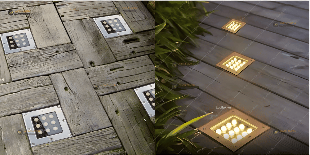 Các mẫu đèn âm cầu thang: Mẫu âm đất vuông của Lucilux