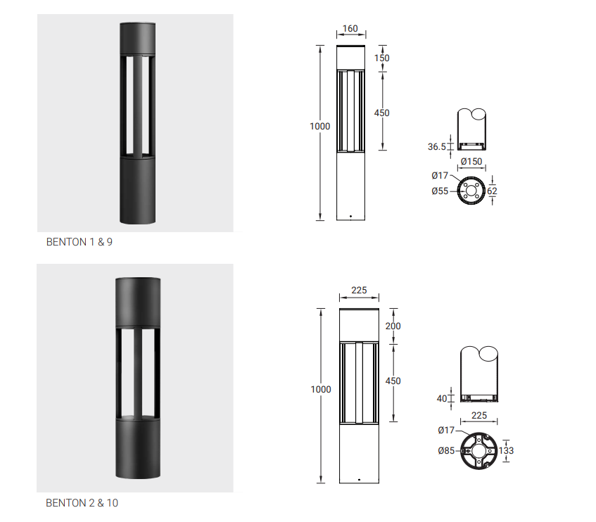 | BENTON 2 | BE-10011 | 1 COB | 26 W | 1622 - 1642 lm | 9.5 kg | 65° | 8030 | 8040 | Ø225 - 1000 mm | ND | DI | DA |