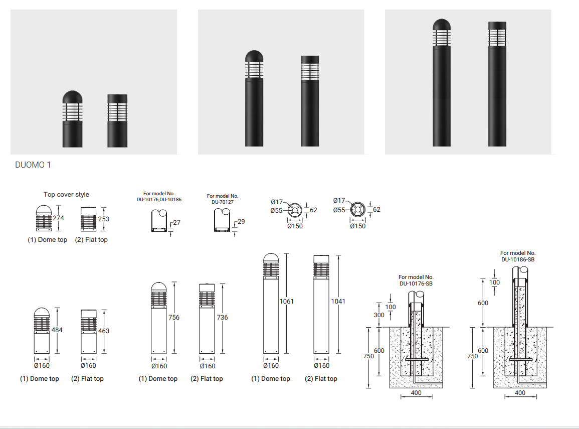 | DUOMO 1 | DU-10186-1 | 1 COB | 41 W | 734 - 742 lm | 8.6 kg | 360° | 8030 | 8040 | Ø160 - 1061 mm - Dome top | ND | DI | DA |