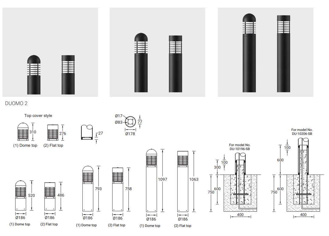 | DUOMO 2 | DU-10196-1 | 1 COB | 41 W | 664 - 673 lm | 8.8 kg | 360° | 8030 | 8040 | Ø186 - 792 mm - Dome top | ND | DI | DA |