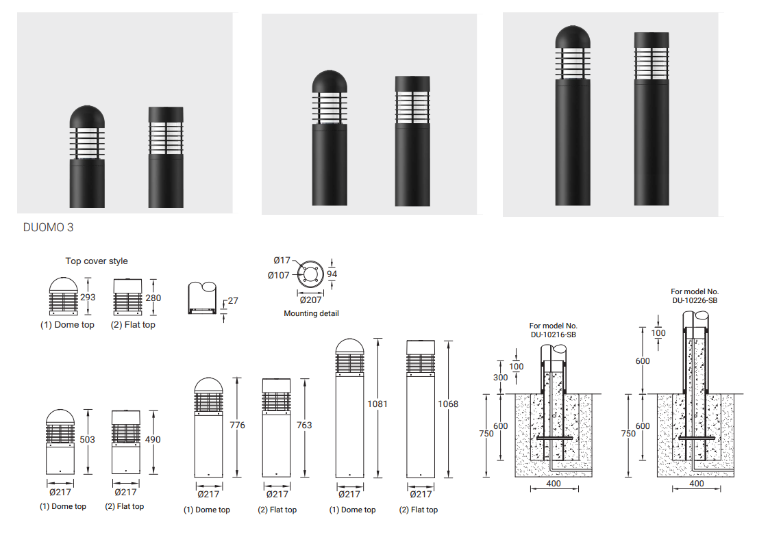 | DUOMO 3 | DU-10216-2 | 1 COB | 41 W | 386 - 390 lm | 10.4 kg | 360° | 8037 | 8040 | Ø217 - 763 mm - Flat top | ND | DI | DA |