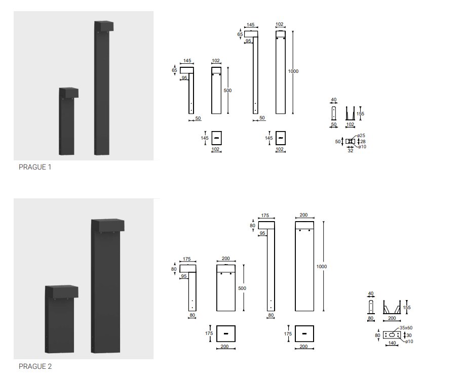 | PRAGUE 1 | PRA-10002 | 102x50 mm - 1000 mm | 4 LED | 7.6 W | 568 - 855 lm | 3.0 kg | 8031 | 8040 | ND | |