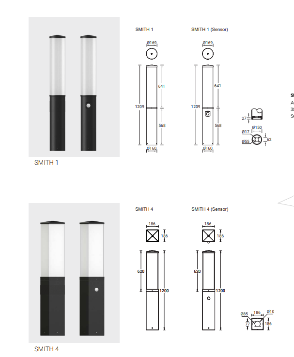 | SMITH 1 | SM-10693 | 102x50 mm - 500 mm | 3 x 32 LED | 33 W | 1561 - 1644 lm | 7.9 kg | 360° | 8030 | 8040 | ND | DI | DA |
