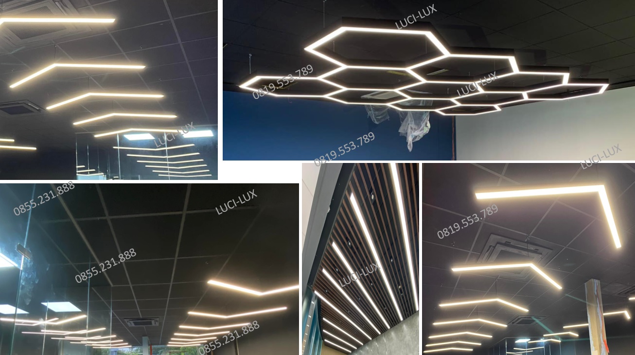Thanh nhôm đèn LED cũng có thể được lắp đặt để treo thả, ốp trần, tạo ra không gian nội thất ấn tượng và hiện đại. Việc này không chỉ chiếu sáng một khu vực cụ thể mà còn tạo điểm nhấn nghệ thuật trong không gian Văn phòng, Hội trường, sảnh trung tâm toà nhà, trung tâm thương mại, văn phòng làm việc, nhà thi đấu thể thao,...