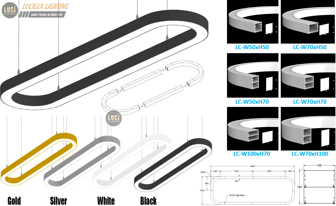 Đèn thả văn phòng hình OVAL | Đèn thả nhôm profile uốn cong