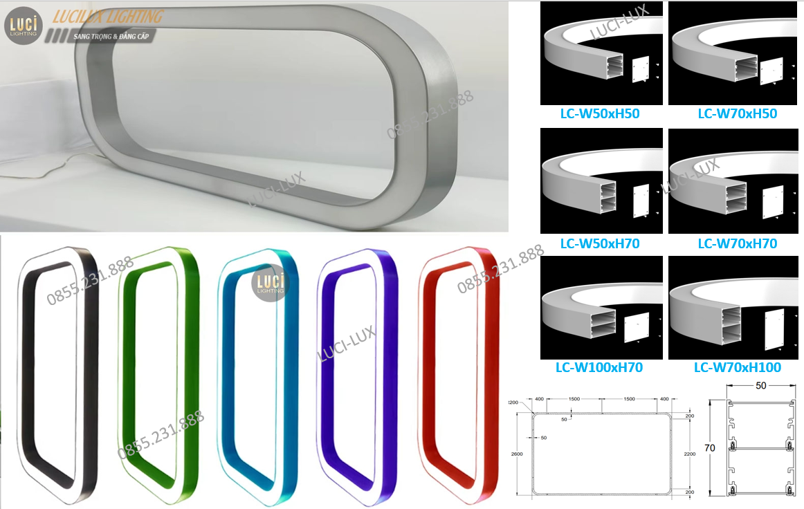 - Kích thước đèn: chiều dài đặt sản xuất theo yêu cầu theo hình vuông, hình chữ nhật